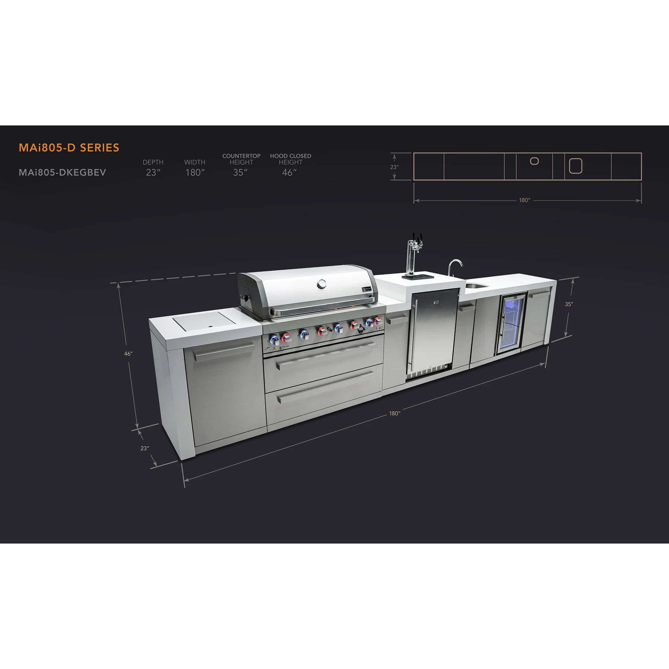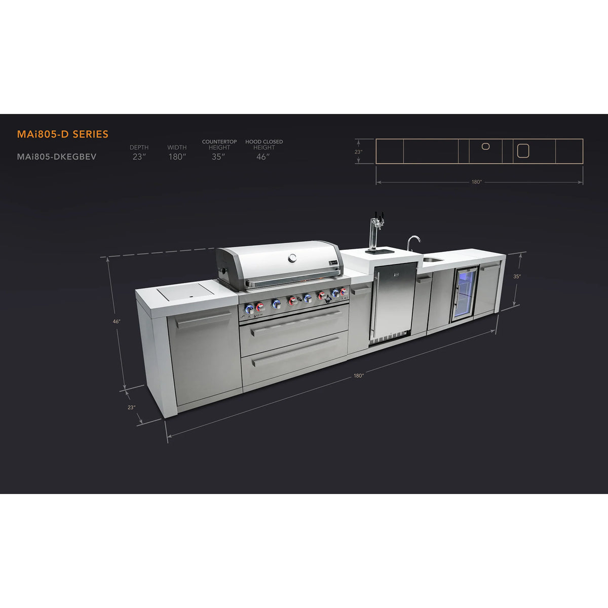Mont Alpi 805 Deluxe BBQ Grill Island with Kegerator & Beverage Center - MAi805-DKEGBEV