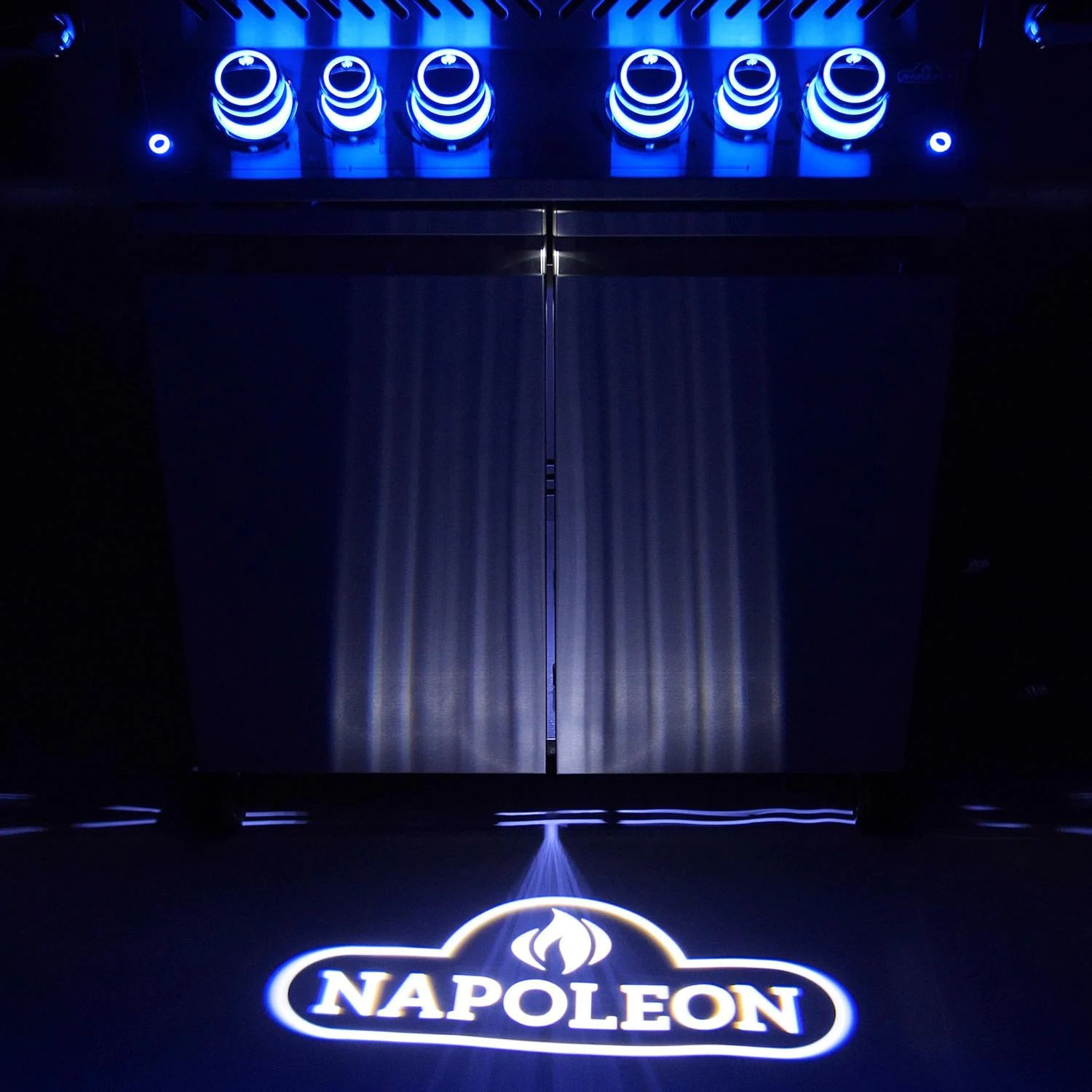 • Proximity Lighting New lighting feature uses motion detection to project a Napoleon logo on the ground when you're ready to grill