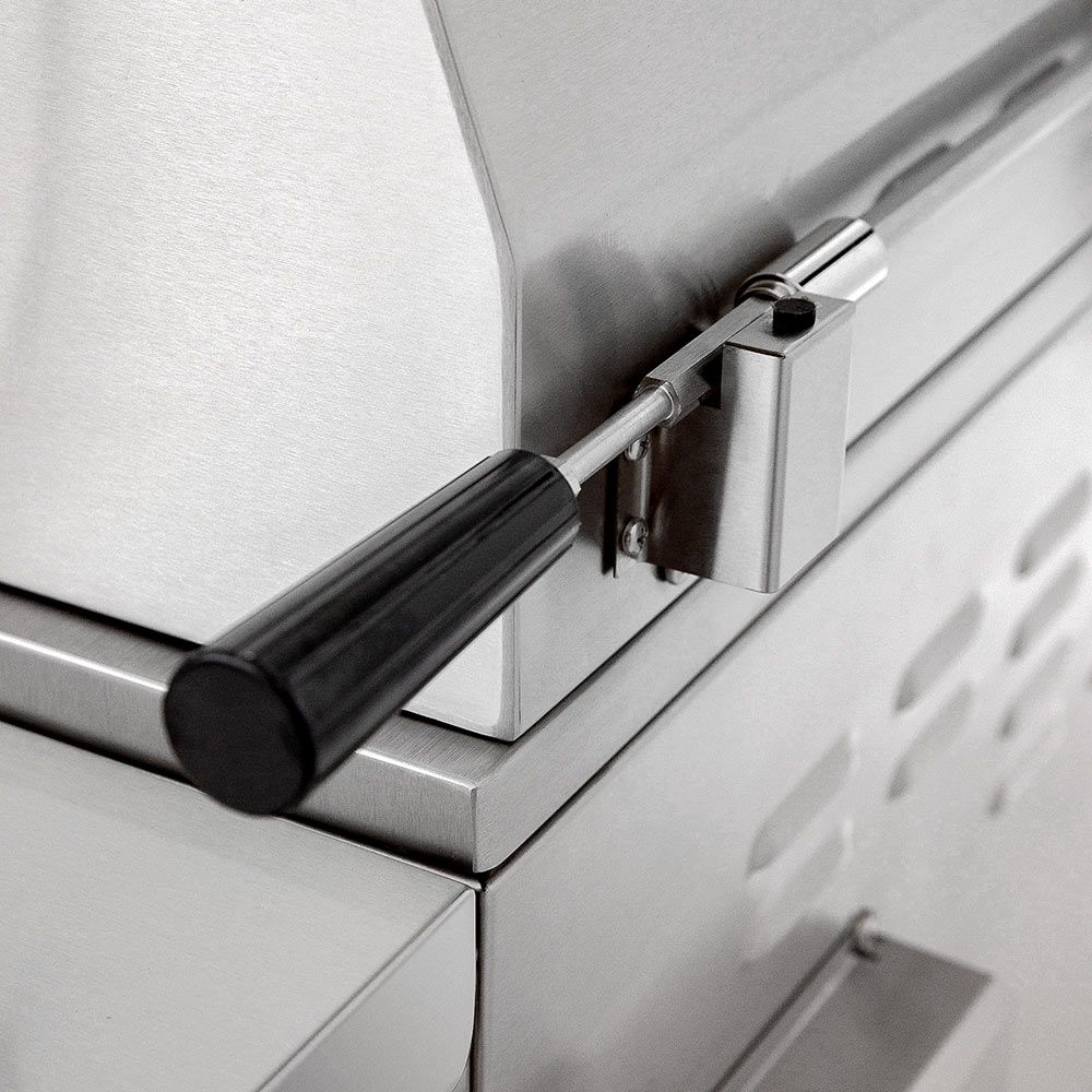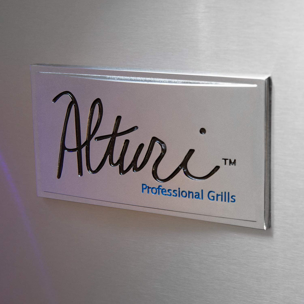 The 36-inch Alturi also features a unique Flame Thrower Ignition that shoots a burst of flame to ignite the main burners and is much more reliable than traditional spark ignition systems. The double lined, spring assisted hood keeps hot air in to ensure a consistent grilling environment complete with a built in 3-inch temperature gauge and interior halogen lighting with LED front panel lighting. In addition, the 11,000 BTU infrared back burner offers a high quality rotisserie burner for professional style rotisserie cooking and includes a storage bracket for the rotisserie spit when not in use. Available for both propane and natural gas, this built in grill ensures a complete outdoor kitchen.