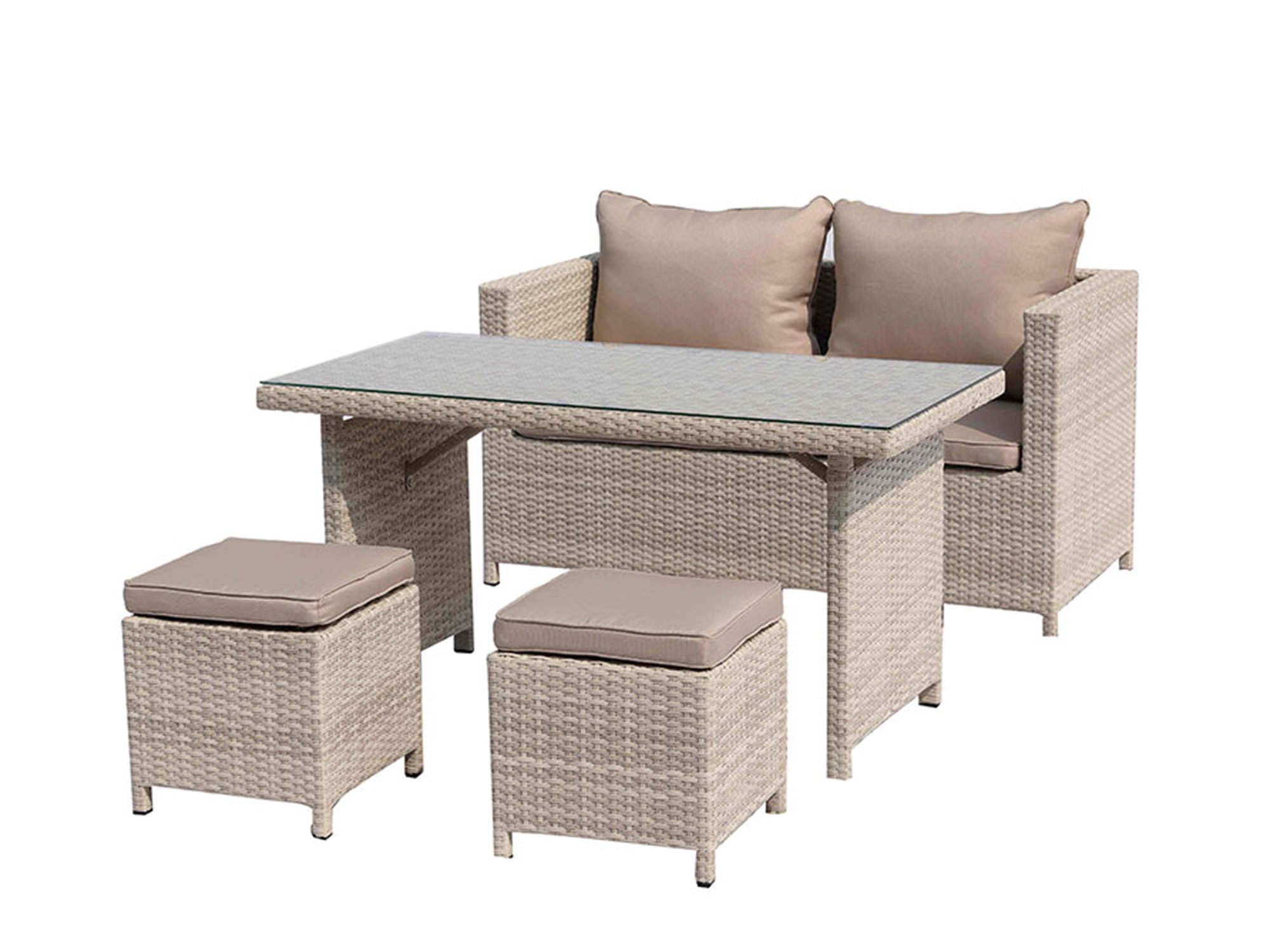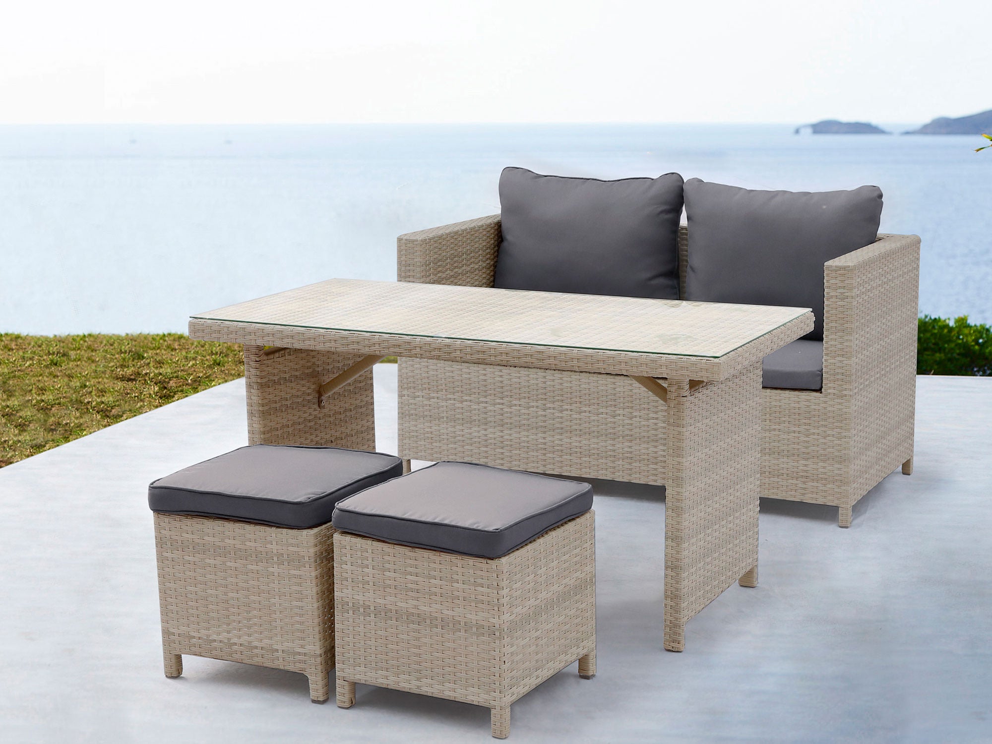 Abbie 4 Piece Outdoor Dining Set in Beige Poly Wicker & Fabric by Whiteline Modern Living