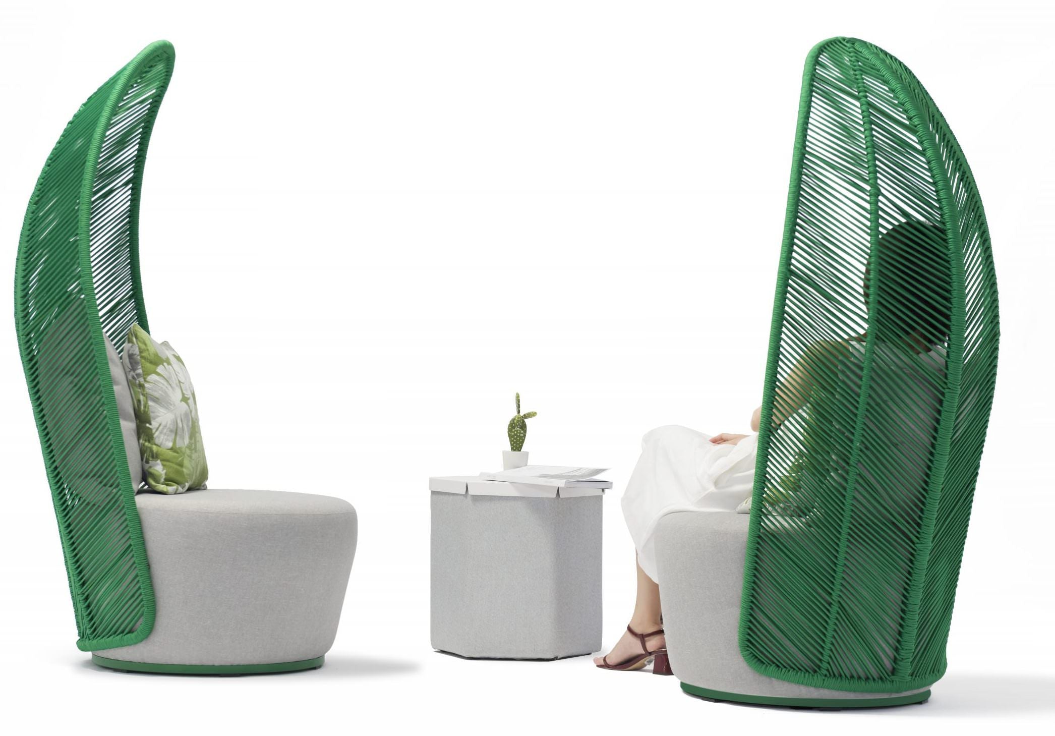 Basil Outdoor Chair in Green Weave & Grey Fabric by Whiteline Modern Living