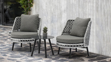 Koala Outdoor Accent Chairs & Side Table Set in Black, White & Grey Wicker by Whiteline Modern Living