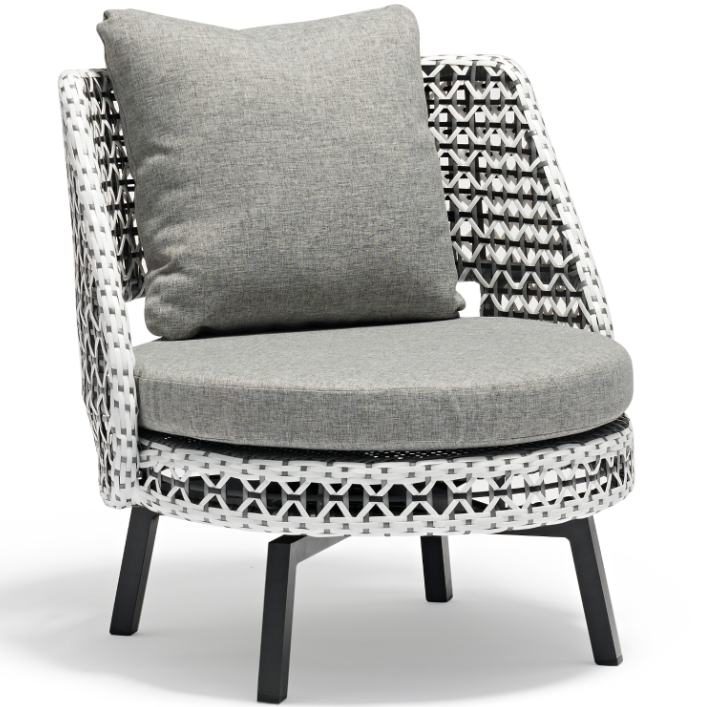 - Features a stylish black, white, and grey wicker design that complements any outdoor decor