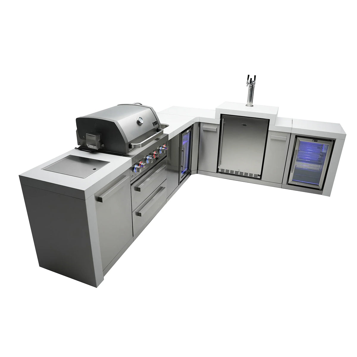 Mont Alpi 400 Deluxe BBQ Grill Island with 90 Degree Corner, Kegerator, Beverage Center & Fridge Cabinet - MAi400-D90KEGBEVFC
