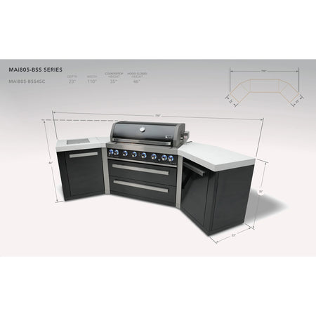 Mont Alpi 805 Black Stainless Steel BBQ Grill Island with 45 Degree Corners - MAi805-BSS45C