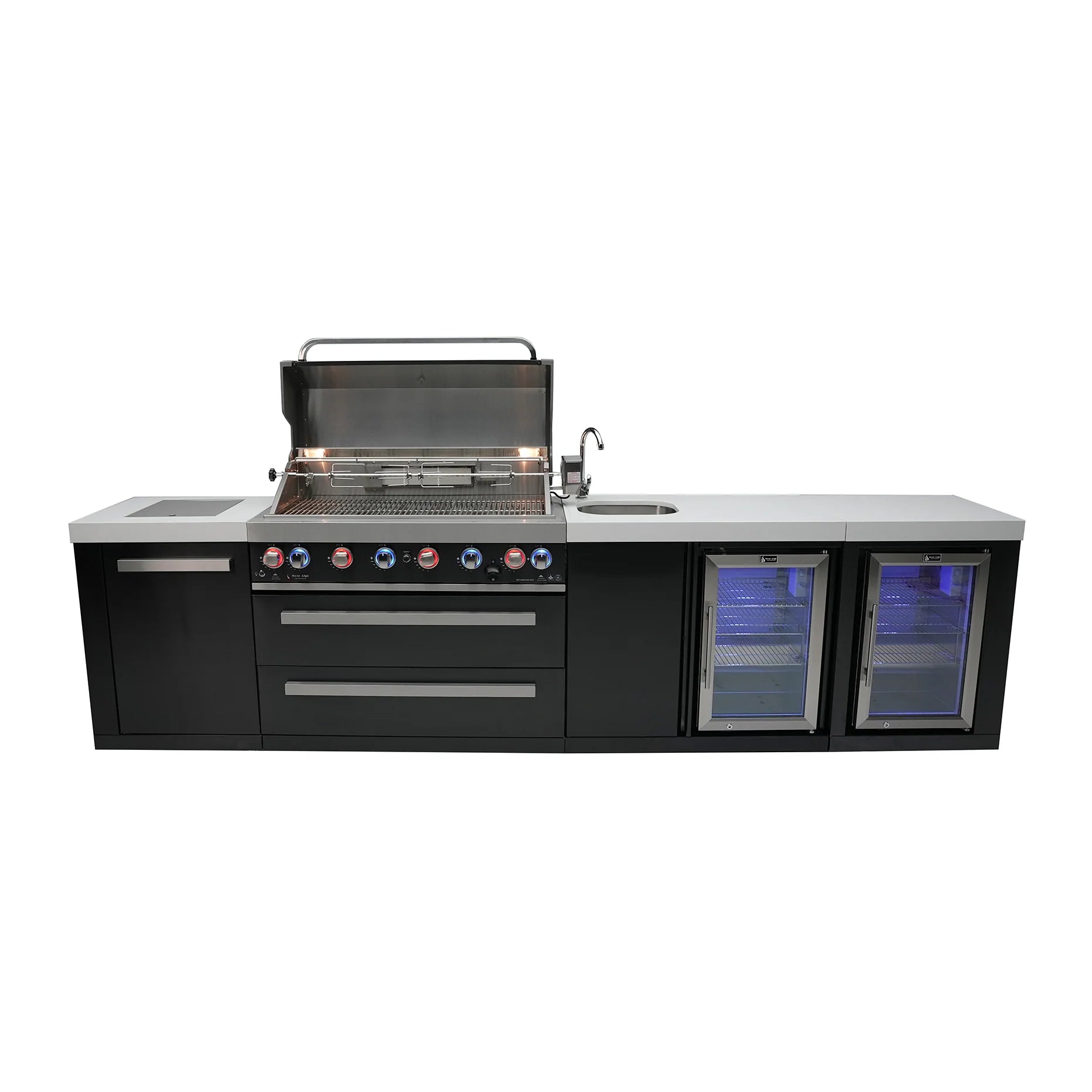 The 805 Black Stainless Steel BBQ Grill Island has 8mm 304 stainless steel rod cooking grates, 304 heavy duty stainless steel tubular high-efficiency burners. With very little assembly, you will be grilling in no time!