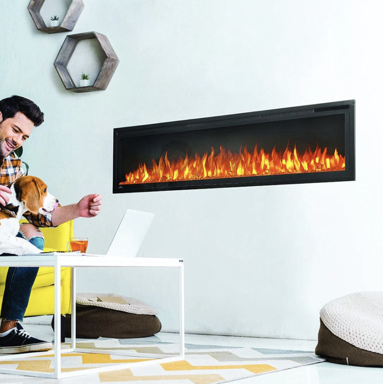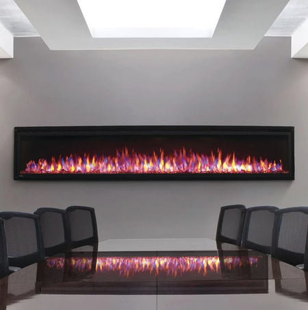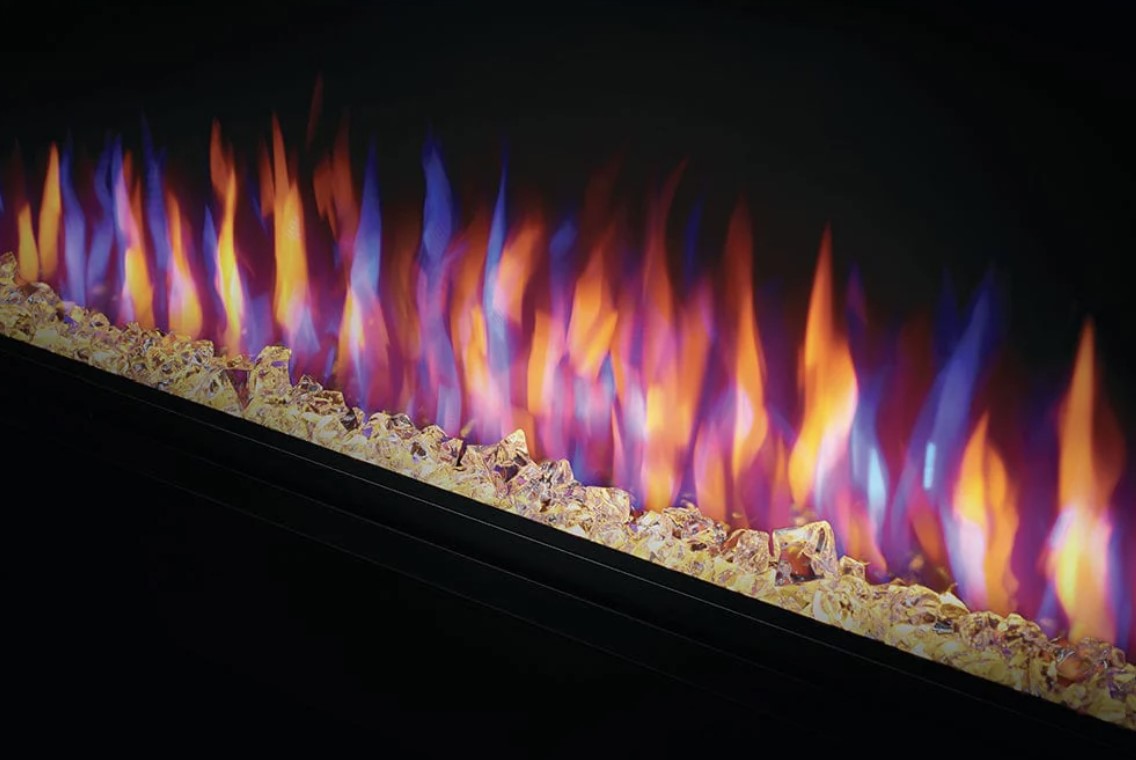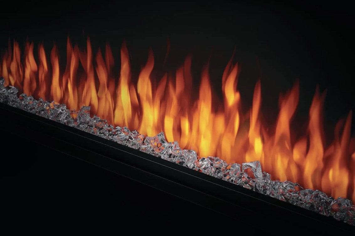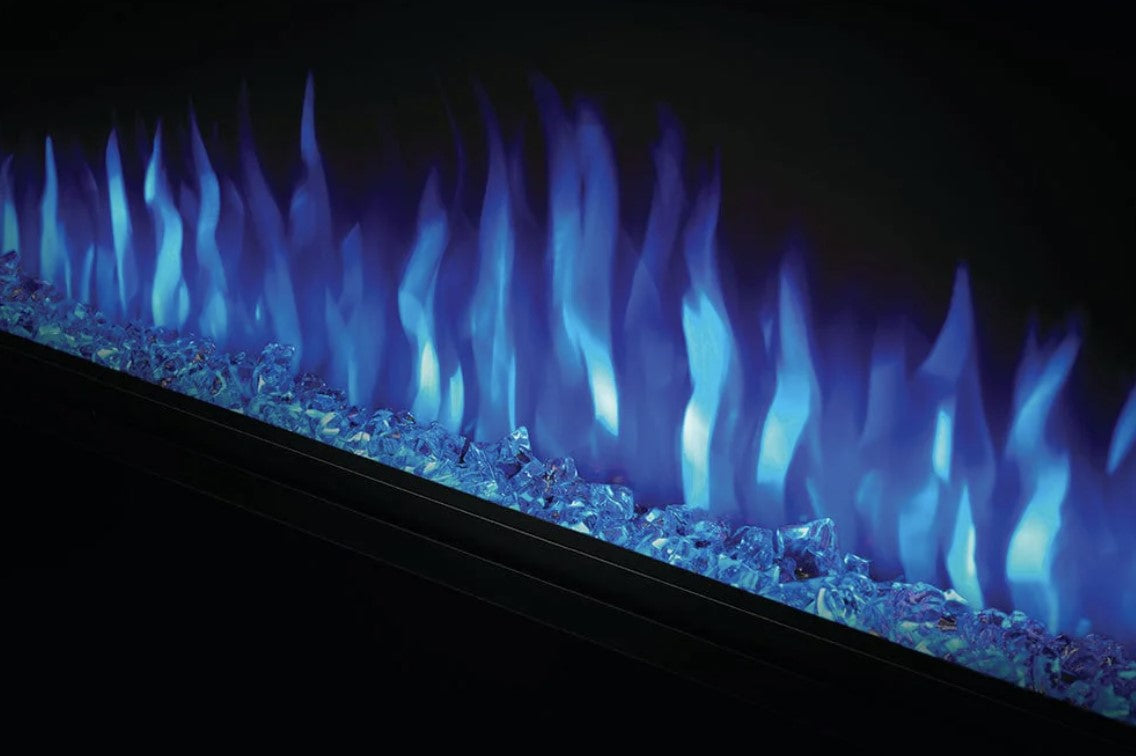 - Crystal Glass & LED Lights - Contemporary clear fire glass and backlit LED lighting elevate ambiance in any room; Optional media kits available