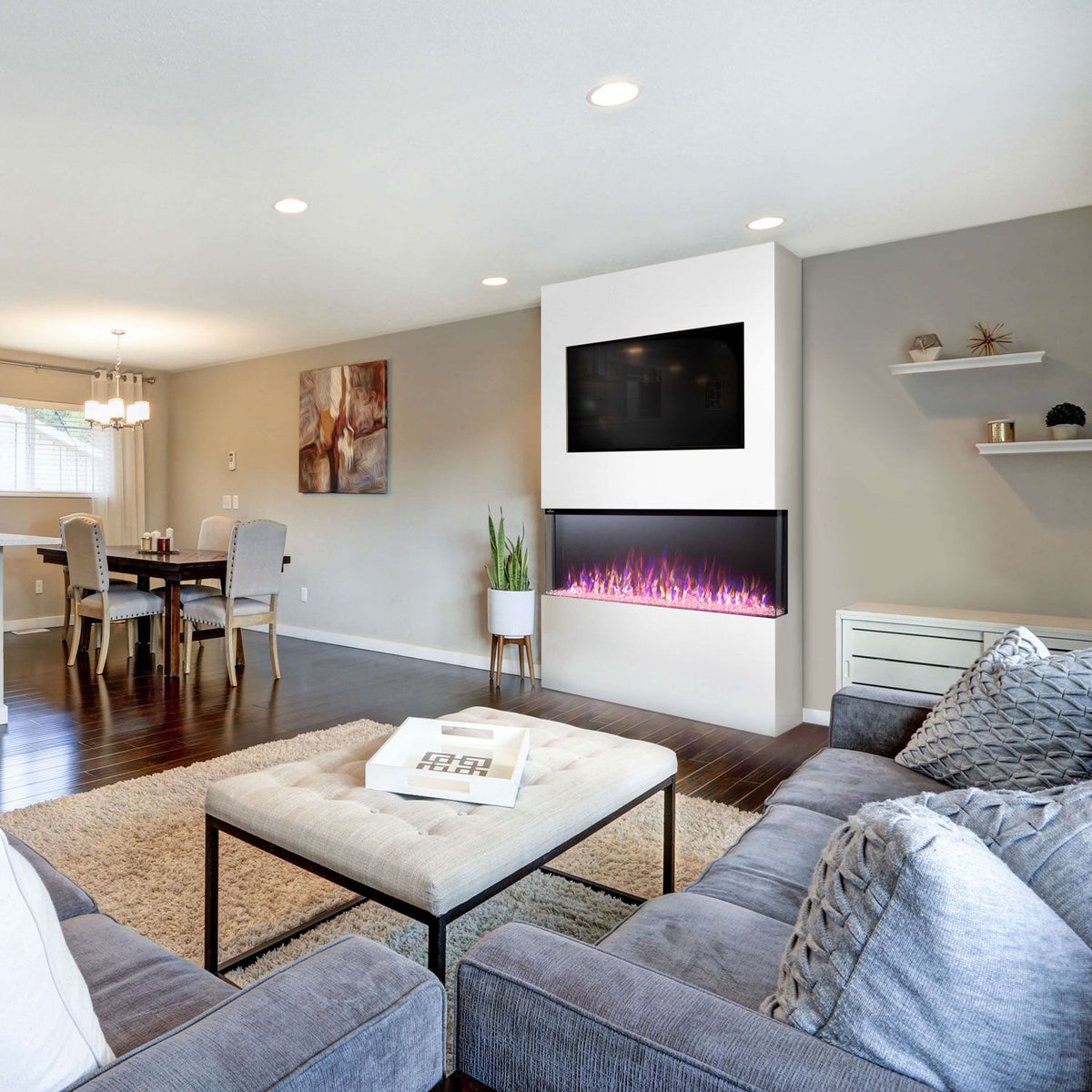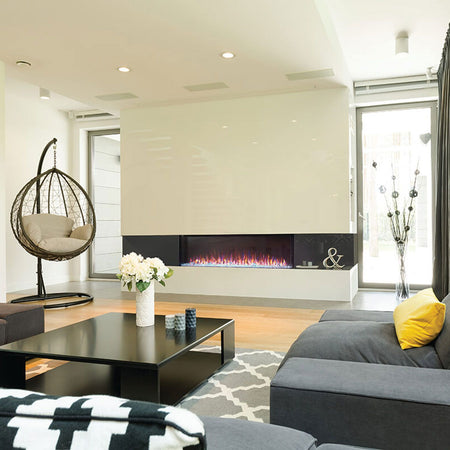 Napoleon NEFBxx-3SV Trivista Primis 3-Sided Electric Fireplace provides a beautiful built-in fireplace option to enhance your favorite indoor living space. This fireplace features the highest heat output in its category at 10,000 BTUs. The included end panels allow you to enjoy this 3-sided fireplace as a 2-sided or 1-sided fireplace depending on installation location. The fireplace comes with Northern Woods log set and acrylic crystals - choose to use one or combine them both for an amazing and unique display. Easily control the many features using the remote control or the touch screen panel with motion proximity sensor.