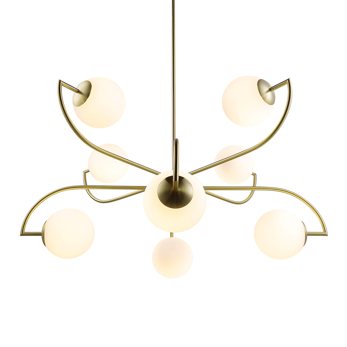 Materials: Milky frosted glass globes, Satin brass plated Iron