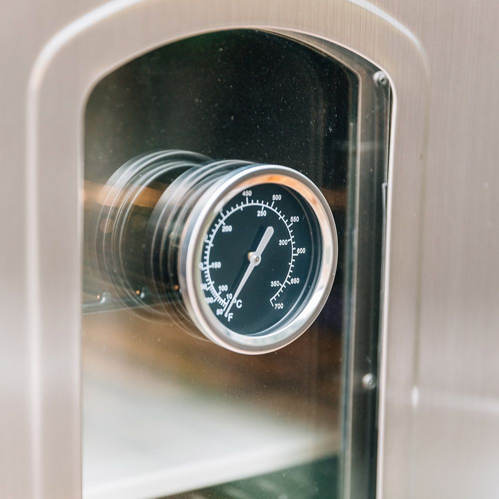 • User Friendly Design - Front view window with temperature gauge allows for easy monitoring of food