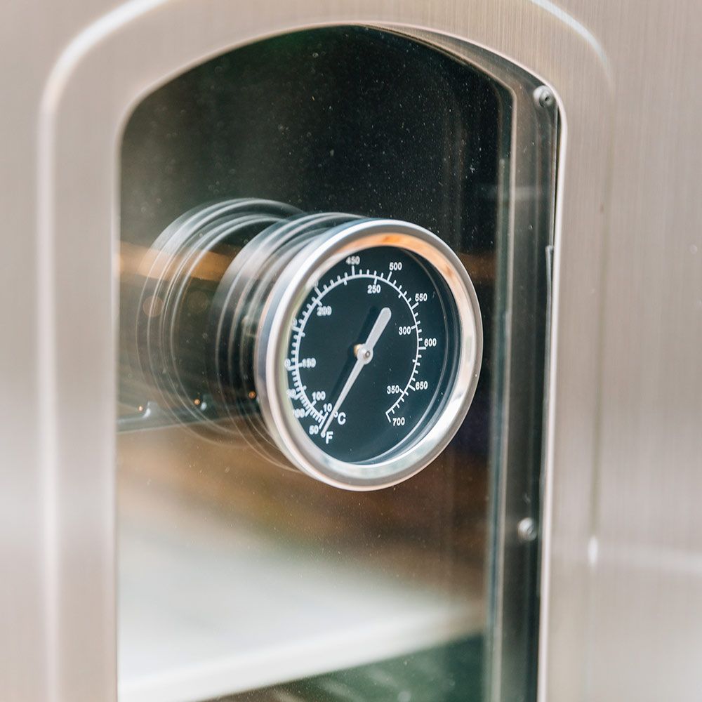 • User Friendly Design - Front view window with temperature gauge allows for easy monitoring of food