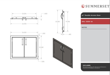 Summerset SSDD-26 Double Access Doors, 26-Inch provide durable doors for your grill island. The high quality 304 stainless steel construction ensures a long lasting product, while the stainless steel mounting bracket provides a durable frame to mount the door to your grill island. The matching Summerset handles coordinate with the Summerset line of grills for a seamless look and the magnetic latch provides a secure closure. Be sure to complete your outdoor kitchen with everything that you need, including these Double Access Doors from Summerset.